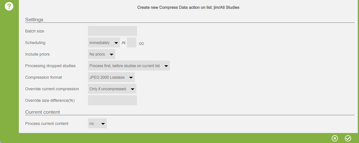 Set up an action to compress data as follows: