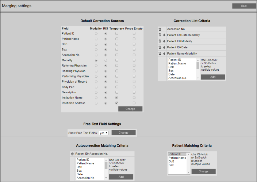 - Korrekció lista feltétel - meghatározza azon kritériumokat, amelyek az egyező vizsgálatokat építik fel a korrekciós oldalon. A vizsgálat a listában megjelenített sorrend szerint van rendezve. Helyezze a legvalószínűbben párosítható mezőket a lista tetejére