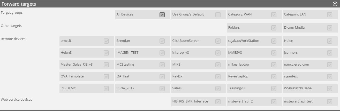 In this section, administrators can pick and choose which device list of target devices available on the forward setup page, forward action setup page and the copy