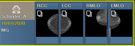 The result of this grouping rule can be seen below.  Notice the series descriptions of the two series are different.  However, because the rule is using the more consistent laterality and view position augmentation argument, the viewer successfully groups the two RCC series.