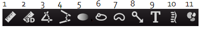 The annotation tools are used to add graphics and measurements to images. To display the Annotations toolbar, select Annotation Tools from the Tools drop down.  They can also be accessed in the second row of the toolbars or by utilizing the mouse controls. Once and annotation has been placed on the image, click on the Default Mode Cursor