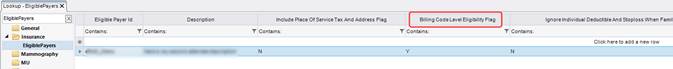 A new Billing Code Level Eligibility Flag column in both the EligiblePayers and the AvailityPayers System Configuration tables allows the administrator to enable this feature by vendor/payer.
