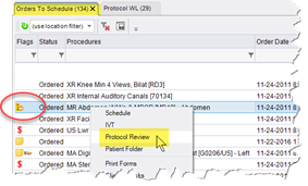 When a site has enabled the protocol workflow, a typical scheduler will monitor both the Protocol Worklist (PW), filtered to their own name, for items requiring follow-up, and the Orders to Schedule Worklist (OTSW) for items completed protocol review.