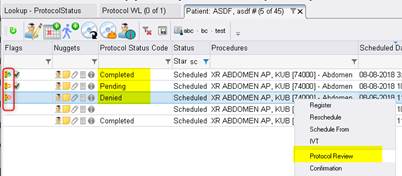 The Patient Folder will be updated with the new Protocol flags to clearly display the protocol state for all items pending scheduling.