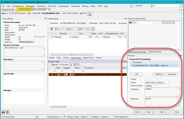 The review is typically performed by a radiologist (but not limited to a role) who will examine clinical history of the patient and will make a decision on if and how to proceed. The order may be passed back and forth between different users in the RIS as the protocoling is completed.