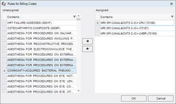Selecting Billing Codes to apply to a Protocol Rule.