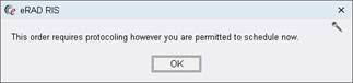 3. However, if protocoling is required but that certain procedure is configured to allowed to be scheduled even when protocoling is required, the messagebox is different and the study can be immediately scheduled by the scheduler: