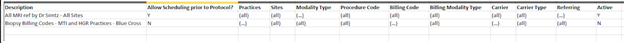 Protocol Rules - The rules configured here are used to determine if a study requires protocolling. Currently this determination is based on examination of billing codes (which are linked to the study).
