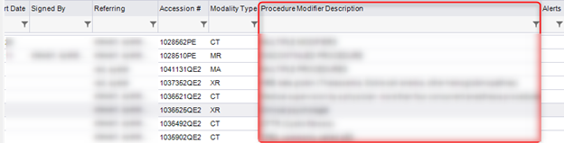 The Pending Dictation and All Pending Dictation worklists have been enhanced to include a Procedure Modifier Description column indicating the exact protocol that was performed on the modality. This value originates from the modality exam description (not to be confused with study description).