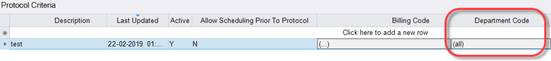A new Department Code column has been added to the Protocol Criteria rules.