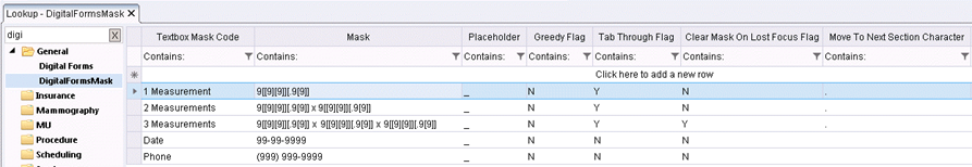 A new lookup table has been added to RIS called DigitalFormsMask. Any masks that are created here will be available for use when a Digital Form is created. The table is preloaded with three commonly used masks for measurements.