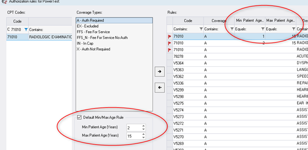 With this change, the PreCert Groups RIS Lookup Table Editor, has been updated to add Min Patient Age (Years) and Max Patient Age (Years) columns. These columns behave in a similar fashion to the columns that were already available in the Conditional Tab and Forms and Labels editors.